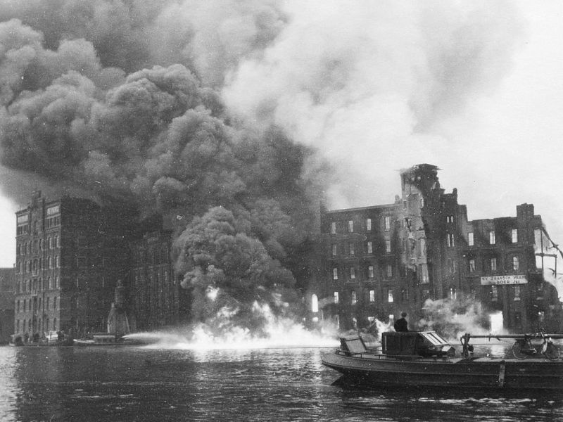 Brand in een oude molenschuur op 12 november 1963. Het vuur bleek te woeden in een partij cacao, copra, kapokzaad en 12 ton spijsolie in vaten. De schuur brandde dan ook zeer fel. Door de stormachtige wind ontstond veel vliegvuur waardoor gevaar ontstond voor nabij gelegen gebouwen en geladen dekschuiten.